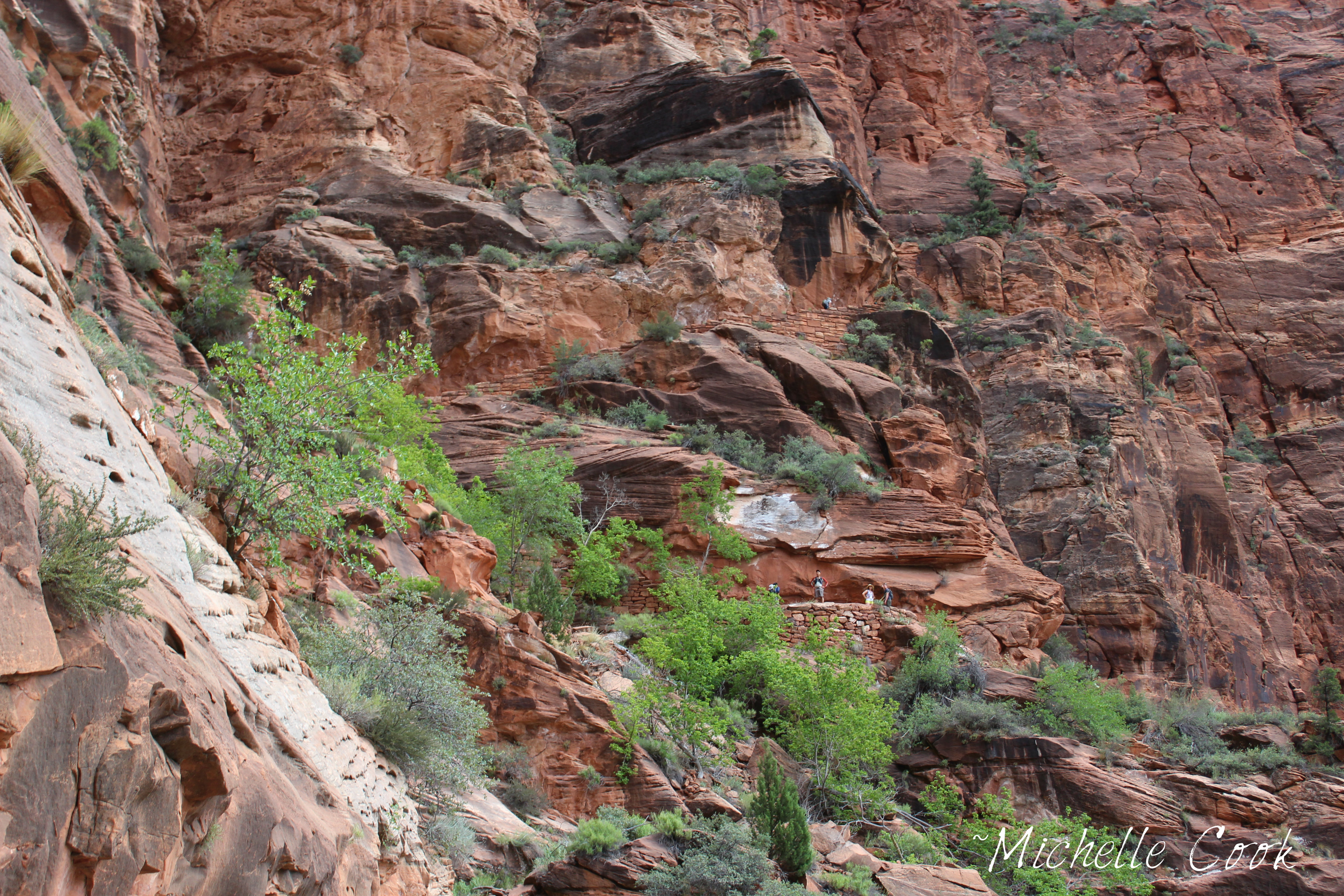 It’s getting more crowded by the minute and there is no way to go around the other people that are coming up the trail from the other side. I am forced to hold my breath and reach out as far as I can to grab the anchored support. After what seems like forever, I finally grasp the support and hoist myself down onto the safety of Scouts Lookout below. I have never been so terrified in all my life and yet I am still glad that I am here, living this adventure with the man I love.